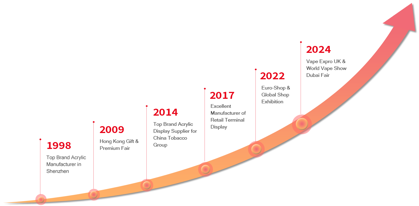 Acryl China has successfully produced various national tobacco exhibition stands for companies such as Hongta Mountain, Yuxi, Yunyan, Honghe, Changbai Mountain, Haotian, Suyan, Huiyan, Guiyan, Jinsheng, etc.,and has collaborated with Shenzhou Computer TCL. Samsung LG, Long term cooperation with electronics companies such as Jinli, liquor companies such as Jinwei, Maotai, Qingdao, and cosmetics companies such as Runyan, Lanting, and Sassoon. The company has a factory area of 5000 square meters, nearly 200 frontline employees, complete technical functional departments, strong technical strength, and advanced and complete equipment and facilities. It is the best choice for your long-term strategic cooperation!