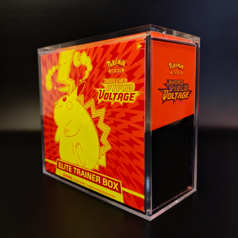 Crafted from clear, sturdy acrylic, this display box with a magnetic lid is designed for Pokemon cards.