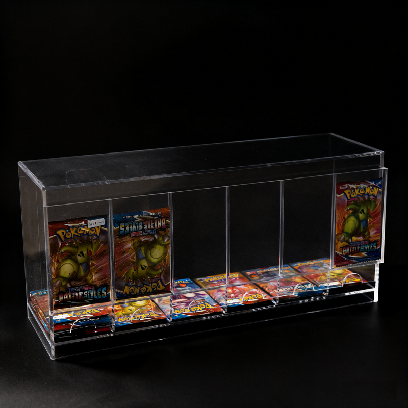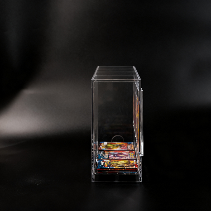 The Acrylic 6-slots Booster Card Pack Dispenser, made of high-transparency acrylic, keeps your TCG booster packs neat and accessible.