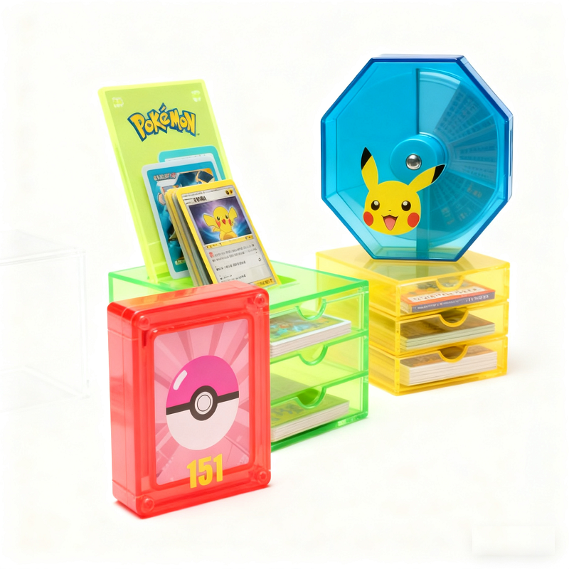The Colorful Acrylic Card Display Case is a practical and decorative storage solution for collectors, made of high-transparency, durable acrylic with vibrant color options, designed to showcase and protect various cards (like Pokémon, sports, or commemorative cards) via user-friendly structures and multiple size options.