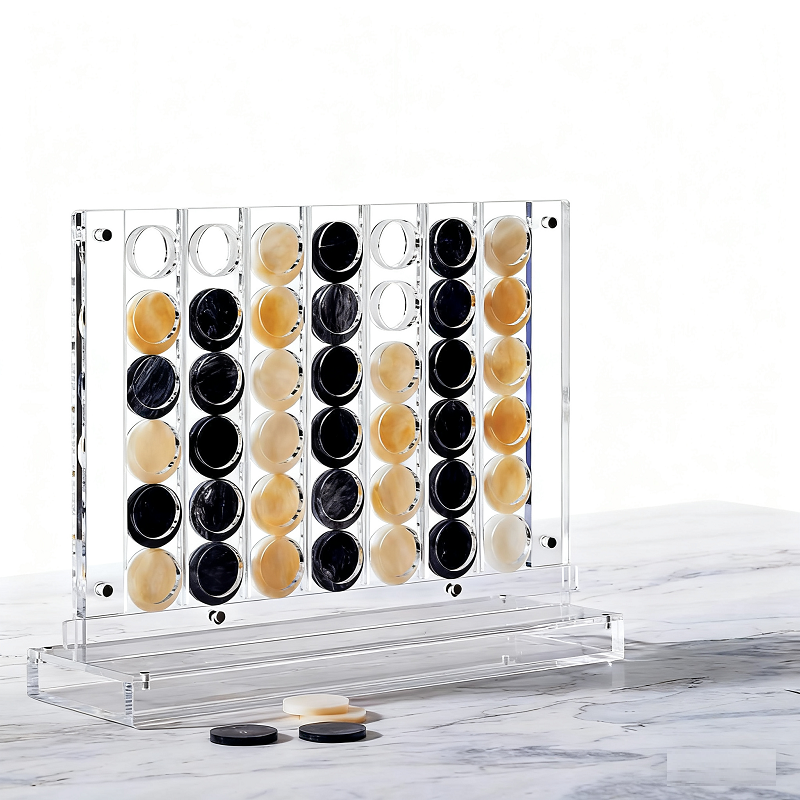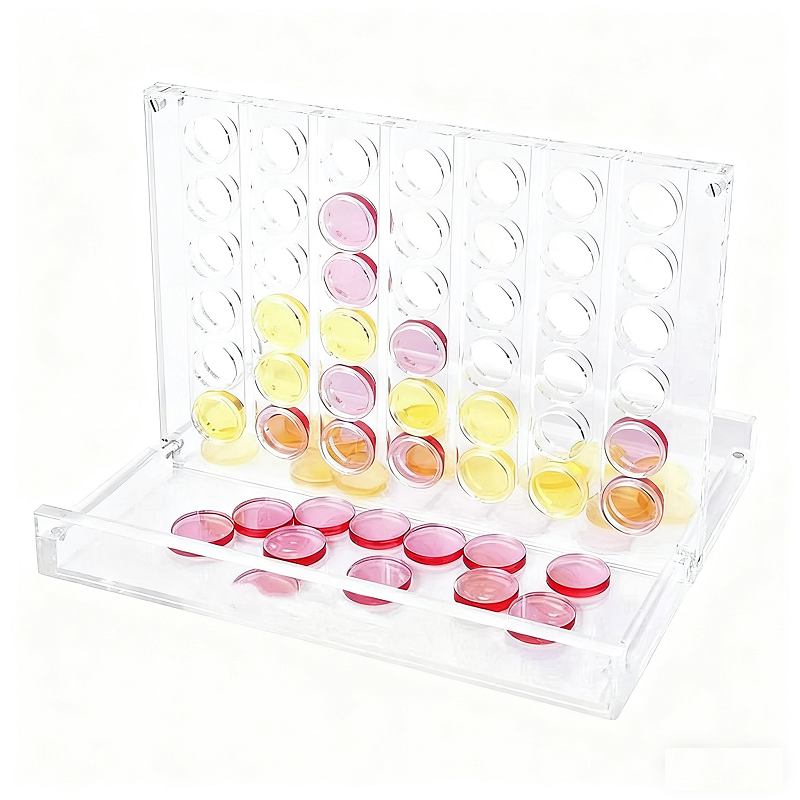 The acrylic 4-in-a-row is a durable, clear and visually appealing tabletop game where players take turns dropping colored discs into a vertical grid, aiming to line up four of their discs in a rowThe acrylic 4-in-a-row is a durable, clear and visually appealing tabletop game where players take turns dropping colored discs into a vertical grid, aiming to line up four of their discs in a row