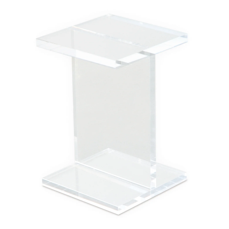 The design of this table was inspired by the profile of steel I-Beam construction girders. Crafted from three 1 inch thick clear acrylic panels, the Acrylic I-shaped Table reflects and scatters light to create an elegant and truly modern accent.