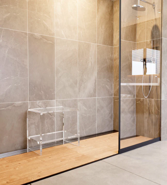 This sleek shower seat is the ideal modern chair, bench, and storage area for a modern shower. Our premium clear acrylic is ideal for the bathroom and shower environment. There are no issues involving rust, yellowing, or rot as with some other materials.
