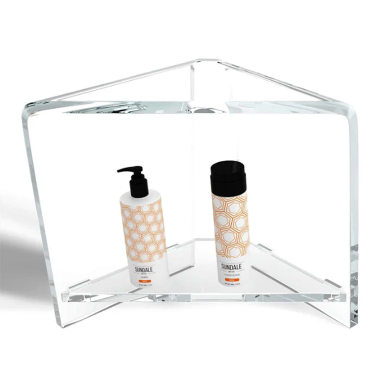 This clear acrylic shower corner stool is the ideal space conscious seat and storage area shelf for a modern shower. Our premium clear acrylic is ideal for the bathroom and shower environment, able to withstand regular attacks from hot water and bathroom chemicals.