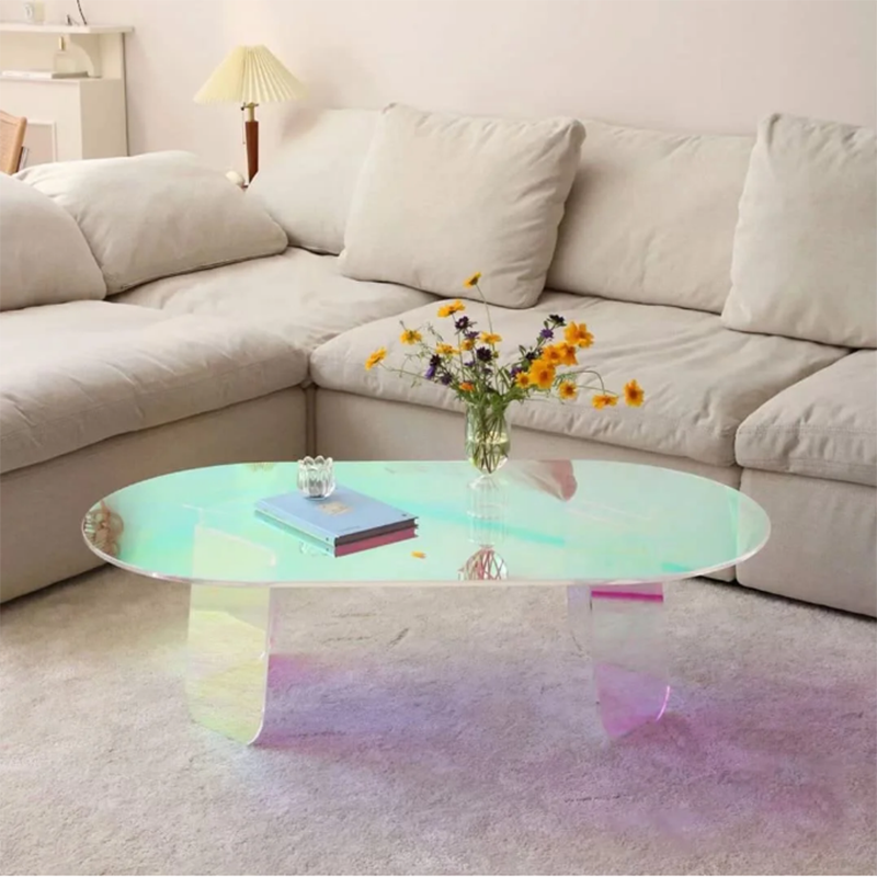 Iridescent Rainbow Table Anti-Scratch Modern Lucite Coffee Table