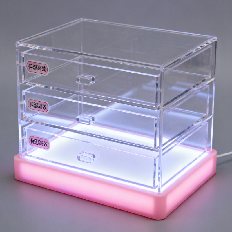 Custom Countertop Perfume Bottle Display Rack Makeup Acrylic Cosmetics Display Stands with Led Lights
